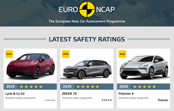 2025 July 17th Hangzhou, China – In the recent announcements on the results of the 2025 Euro NCAP safety tests, the latest models from Geely Holding Group (Geely Holding) portfolio brands, Polestar, Zeekr, and Lynk & Co have all achieved the maximum 5-star safety ratings. All three models, namely the Lynk & Co 02, Zeekr 7X and Polestar 4 participating in the 2025 round of tests share a common heritage of being based on Geely’s Sustainable Experience Architecture (SEA).