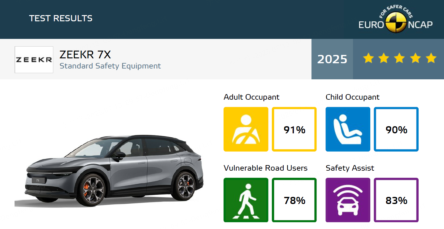 The Zeekr 7X, the brand’s first mid-sized electric SUV to be offered in the European market achieved 90 points for Child Occupant Protection – one of the highest scores among all participants tested this year – and the third-highest score for Adult Occupant Protection of 91 points. Every Zeekr model offered in Europe now has achieved a 5-star Euro NCAP rating, following the awards made to the Zeekr 001 and Zeekr X in 2024.