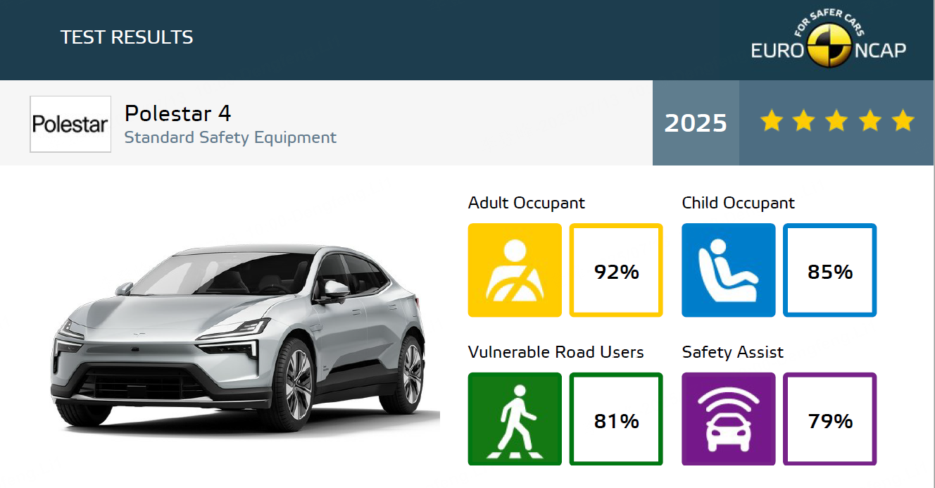 - Among the models tested in this year’s round, Polestar 4 won acclaim for having the joint-highest adult occupant protection score of 92.